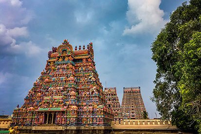 ■ All the temples generally have Gopurams, the large entrance towers. Being a representative of power, wealth, and prosperity, these Gopurams were always the tallest edifices of a town.