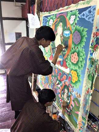 Here you can try your hands on it and learn to paint the eight lucky signs & Buddhist deities those are often painted on the wall of monasteries and in Bhutanese homes.
