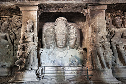 One can see both Hindu & Buddhist caves here. One of the structures amongst these caves which stand out the most is a 20 ft high three headed Lord Shiva monolith idol which is hewn from solid basalt rock.
